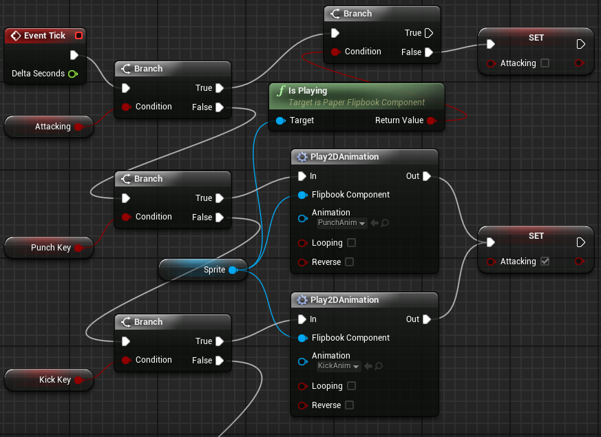 As ações do Lutador serão controladas no evento "Tick". Se o lutador estiver atacando, então nenhum comando novo será feito até que a animação de ataque termine. As imagens abaixo mostram as ações do Evento "Tick".
